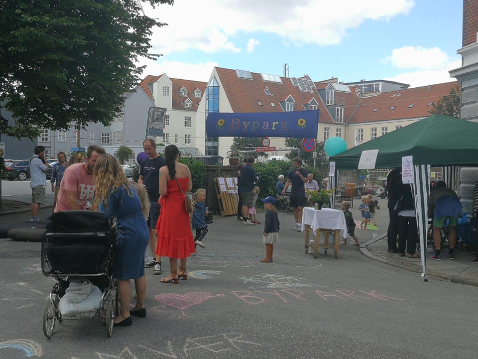 I dag er der hygge og samvær på tværs af generationer, hvor der normalt bare er biler. Skønt initiativ, men desværre midlertidigt.