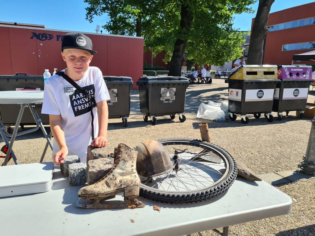 Der var desværre meget. Balloner, cigaretter, flasker, konfetti, plastik. Derudover en kæde og en paryk.