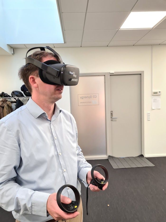 Det lyder måske som sådan noget tryl fra barndomslandet, men da jeg besøgte Unity Studios i Åbyhøj, fik jeg headset på og to joysticks stukket i hånden – og så kunne jeg både løfte Audien og justerer den op i størrelse, når nu bagagerummet var lidt smalt.