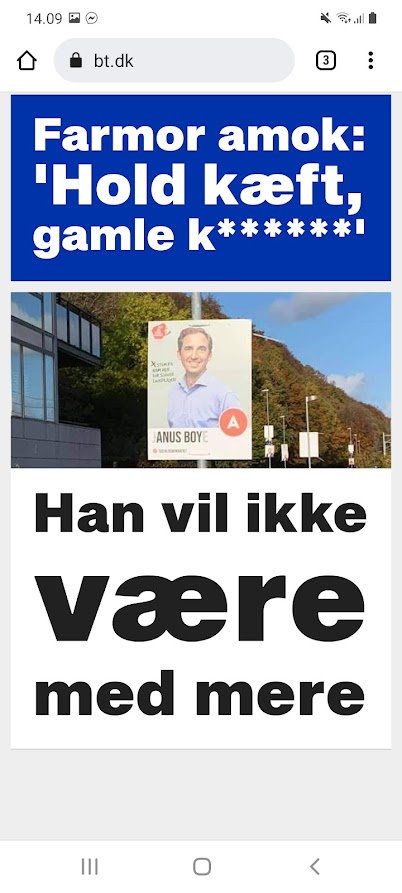 BT havde også en vinkel på drengestregerne: Byrådskandidat i Aarhus udsat for valgplakat-hærværk: ‘Anus Boy’.