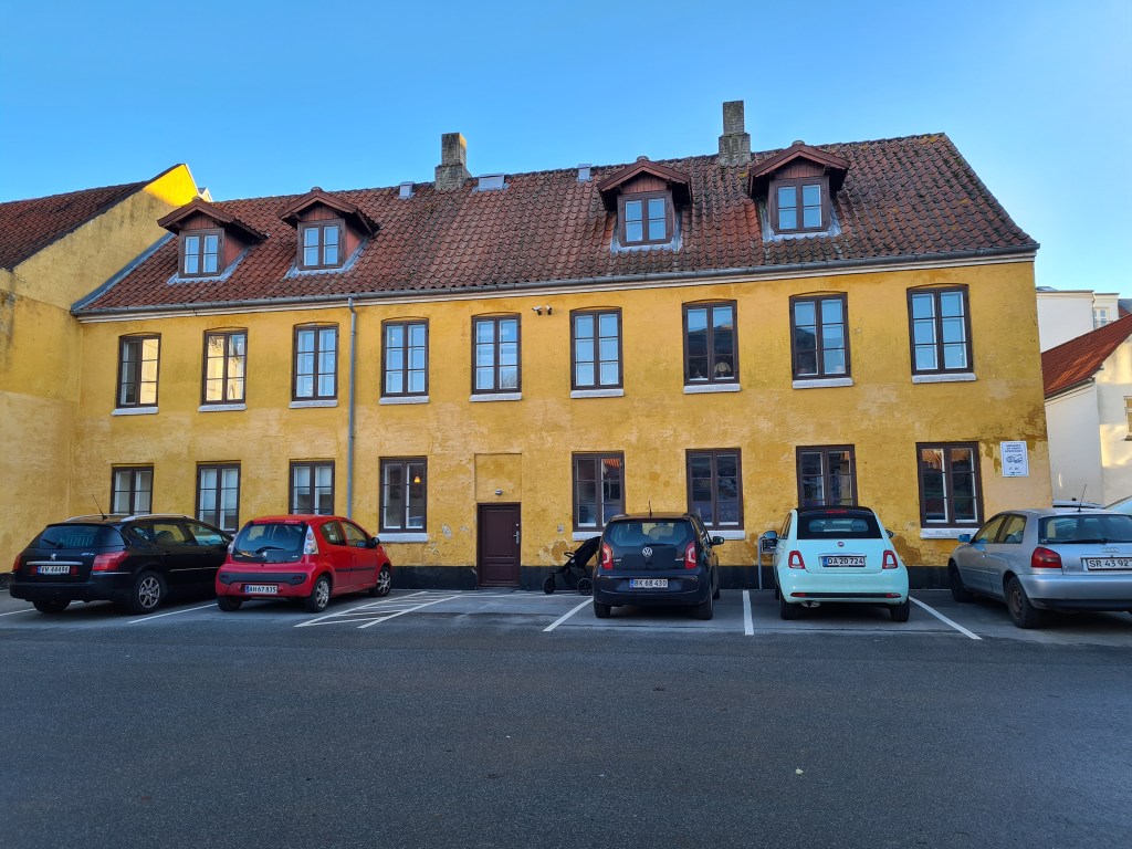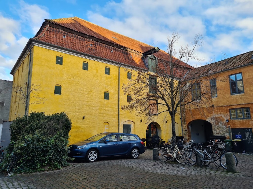 I enhver god baggård finder du også kontrasterne. I denne baggård kan du både se dette flotte og historiske gule hus.