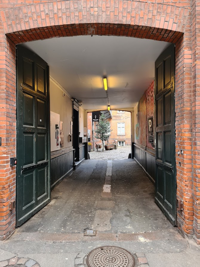 Her skal du åbne en port, og det er måske det som gør, at mange ikke kender lige denne baggård. Den er dog bestemt et besøg værd!