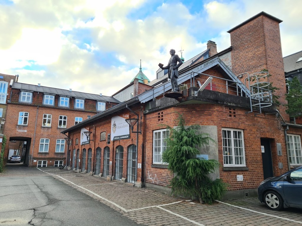Bemærk mindesmærket for chokoladepigerne i den næste port. Som der står på pladen: “Til minde om de kvindelige Medarbejdere på Elvirasminde”.