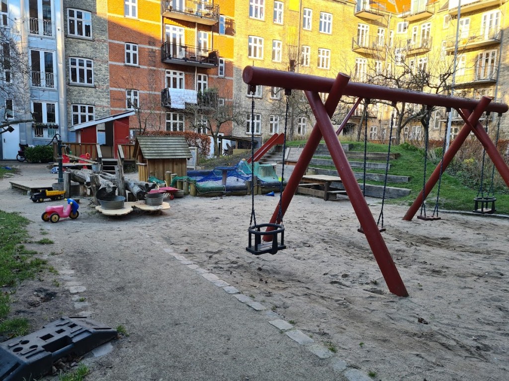 Her har vi holdt fødselsdage med skolen, børnehaverne er tit på besøg på hverdage og så kan den også noget når solen skinner og man kan sidde og slappe af mens børnene leger.