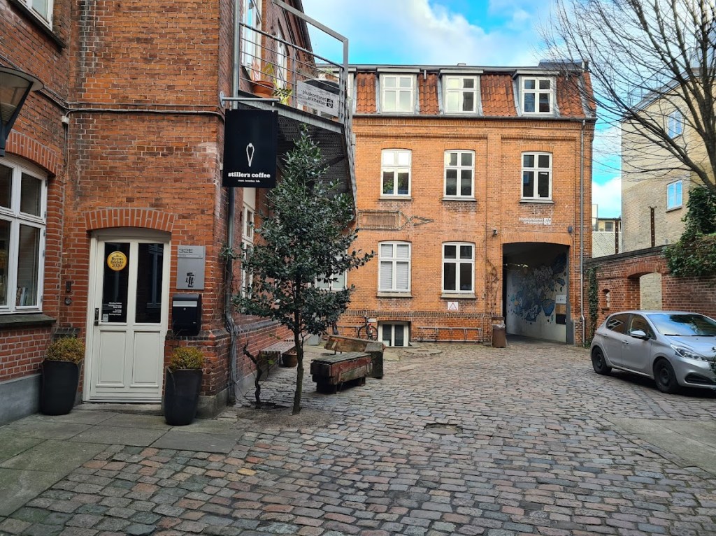 Hvis du går ind via Guldsmedgade, støder du som det første på Stiller’s Coffee, som for et par år siden skiftede navn fra Great Coffee. Det er en café, laboratorie m.m. med personligt touch og et ry for god kaffe langt udenfor Ringgaden.