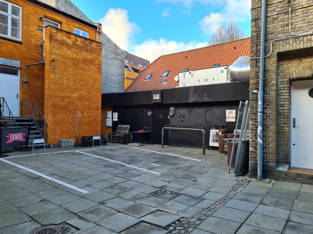 Vestergade er jo udødeliggjort af Gnags, men lige præcis den her baggård er også kendt fra den legendariske natklub V58. Den finder du helt omme bagved forbi Købmandsgården.