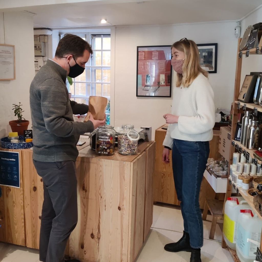 Ingen emballage er jo genialt. Tænk, hvor meget vi smider ud af det hele tiden. Deres varer er også produceret lokalt og ansvarligt. Helt igennem et godt bud på bæredygtigt og klimavenligt købmandskab.