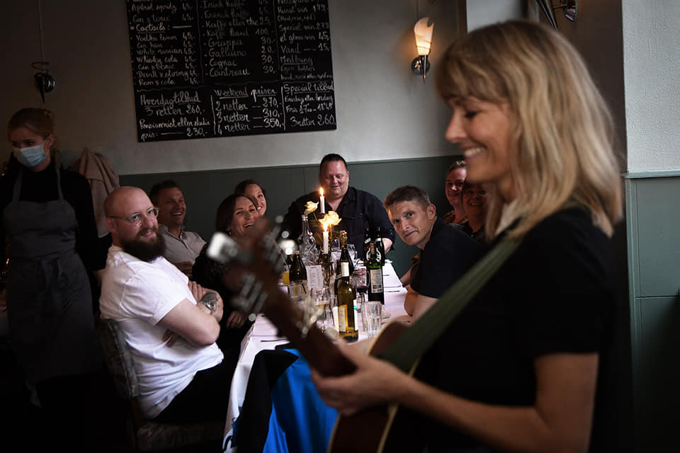 Kom og vær med til en hyggelig aften sammen i Midtbyen. Vi får noget godt at spise og drikke og samtidig kommer Signe Svendsen og spiller et par numre for os.