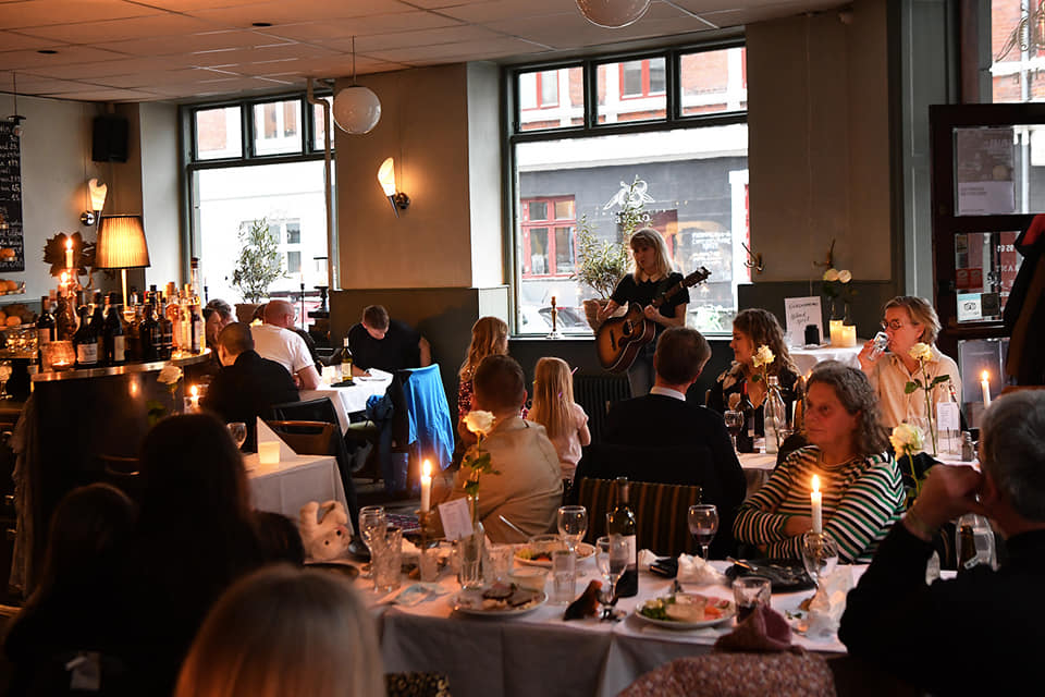 Pengene for deltagelse gik til mad & drikke på Restaurant Olive + honorar til musikeren.